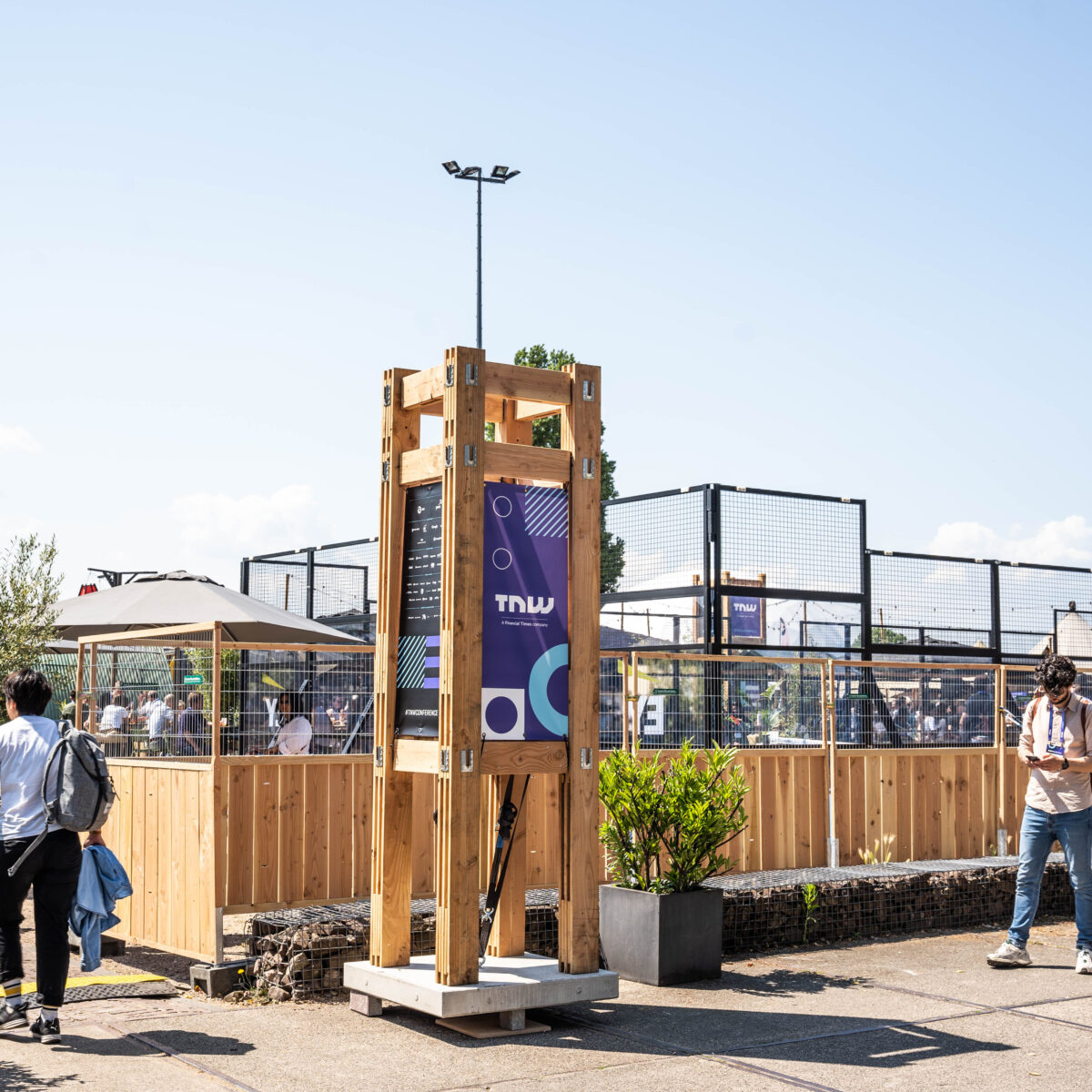 Met deze mega poort XL maak je een spectaculaire eerste indruk van jouw evenement. Samen met jou kunnen we ook een mooi houten bord maken met bijvoorbeeld het logo van je evenement of de naam van de area. Zo weten je bezoekers meteen waar het feest is!